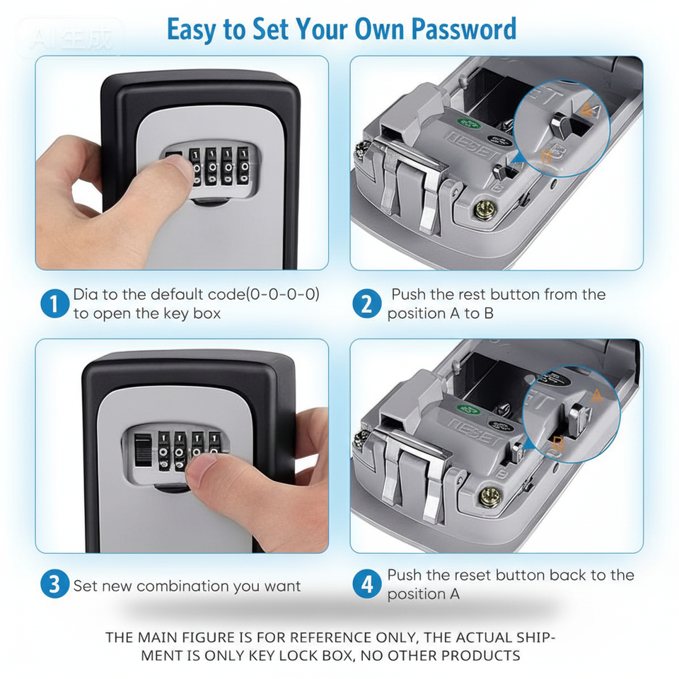 Caja de Seguridad con Cerradura de Combinación de Plástico y Acero, Instalable en Pared Interior y Exterior
