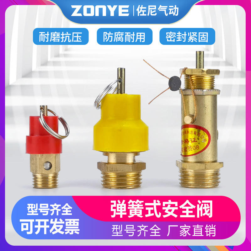 Válvula de seguridad con tapa roja y amarilla de 50 bar, válvula de alivio de presión de aire roscada para uso en compresores