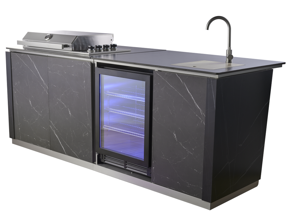 Isla de Cocina Exterior Totalmente en Acero Inoxidable | Estación de Barbacoa Impermeable con Mesa de Bar