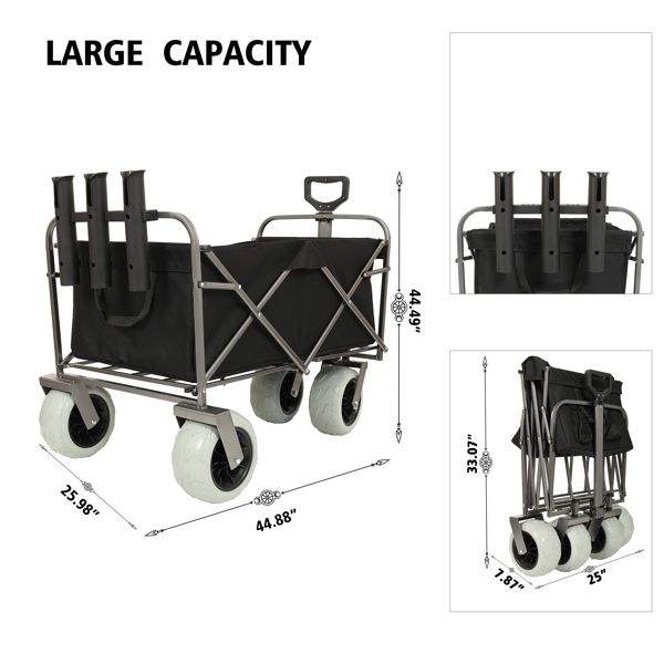 Carrito Utilitario Todoterreno con Estructura de Acero, 9 Ruedas Grandes, Capacidad de 500 lb, para Pesca y Playa, con Portacañas