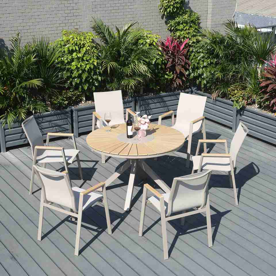 Mesa de Comedor Redonda de Aluminio Resistente a la Intemperie para Exteriores, con Capacidad para 4-8 Personas, para Jardín, Patio, Piscina y Hotel