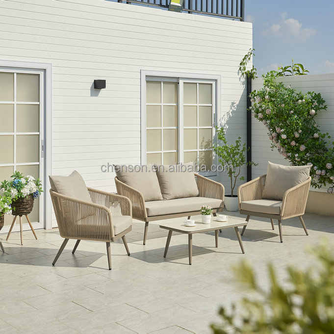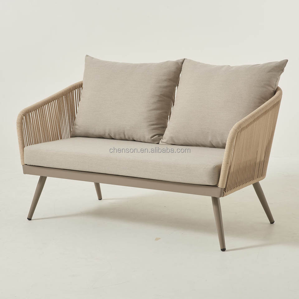 Sofá de jardín de cuerda para exteriores para todo tipo de clima, conjunto de sofá de restaurante moderno, asiento cómodo para patios de café de Hotel, muebles de exterior
