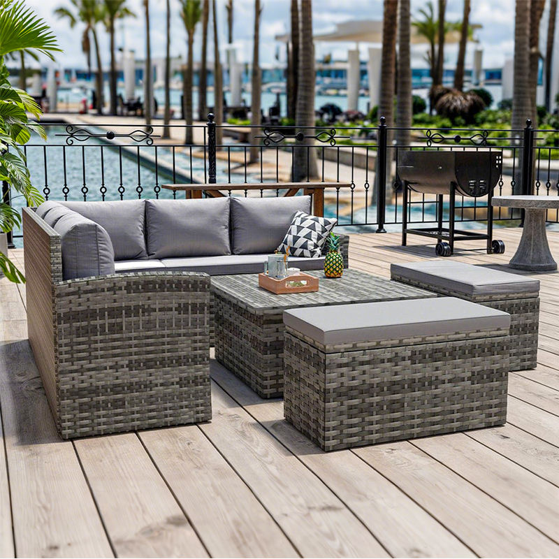 Juego de muebles de exterior de 5 piezas de ratán PE resistente a todo clima, sofá modular, sillas y mesa duraderos para jardín, porche y junto a la piscina