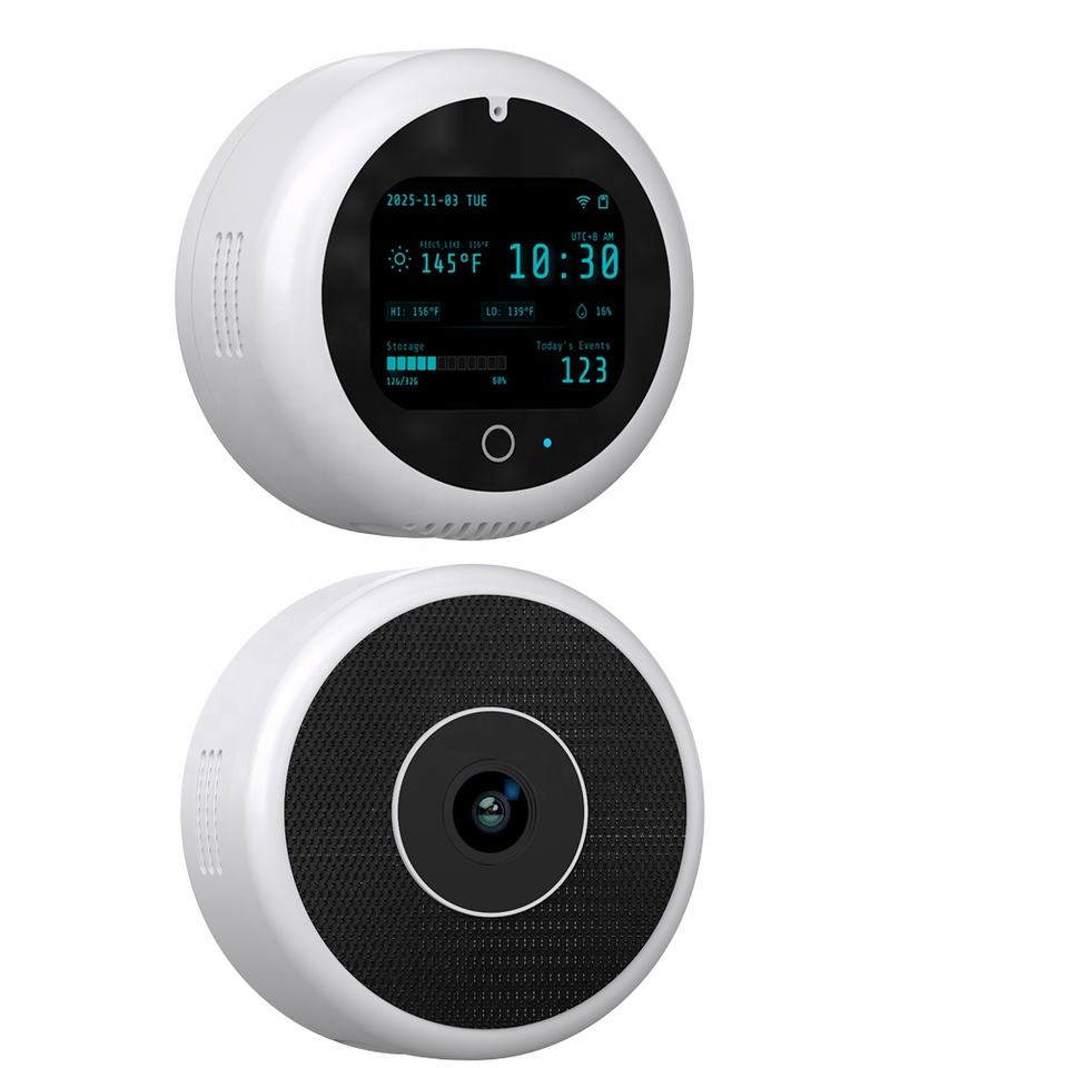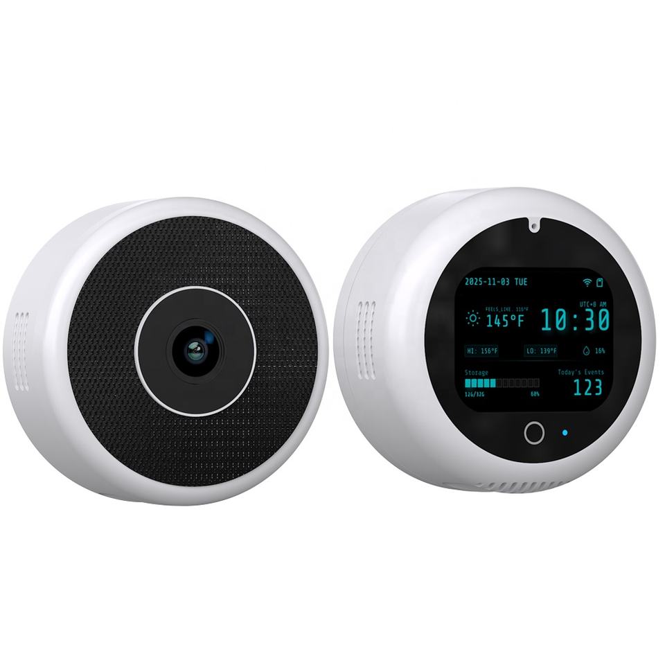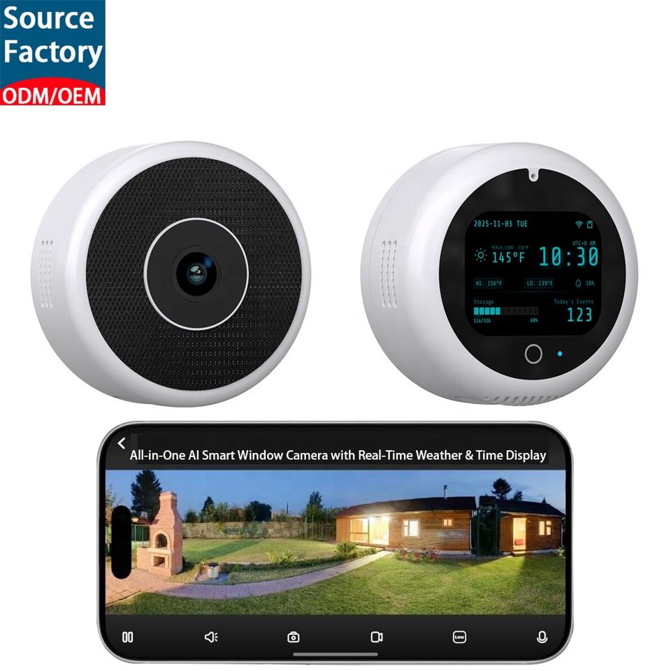Cámara de Seguridad Inteligente para Ventana con IA Todo en Uno, Pantalla LCD de Estado de 2.4'', Estación Meteorológica en Tiempo Real, Cámara IP WiFi con Visualización de la Hora