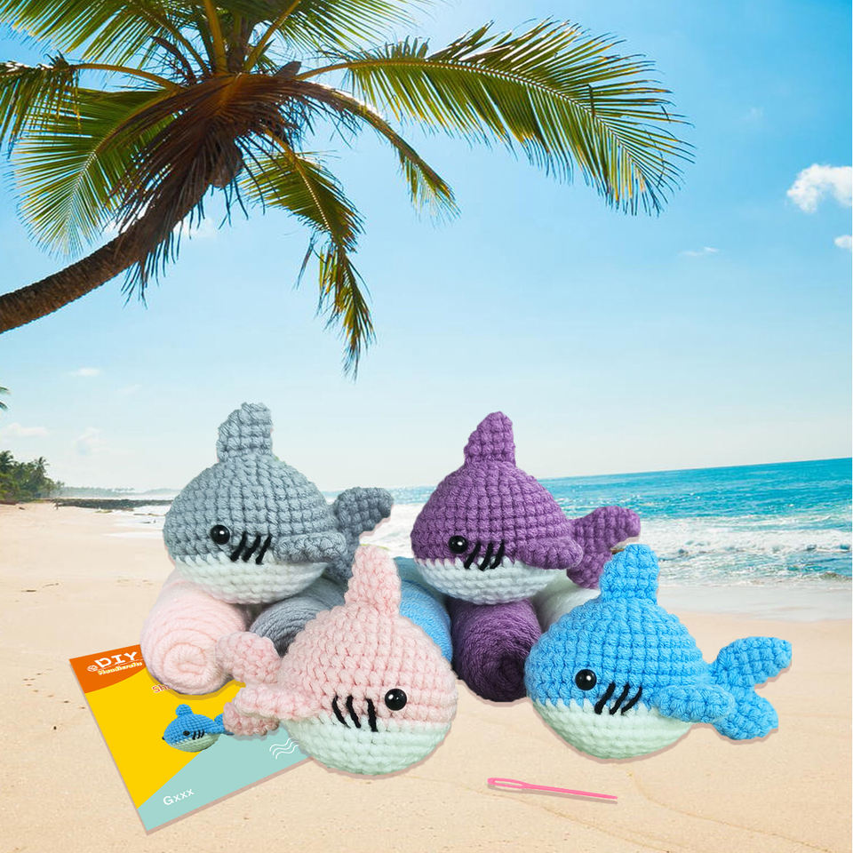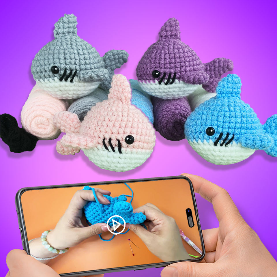 Kit de Crochet Todo en Uno - Crea tu Propio Tiburón, Incluye Todo: Hilo, Aguja de Ganchillo, Ojos, Relleno, Marcadores de Puntos, Aguja y Guía