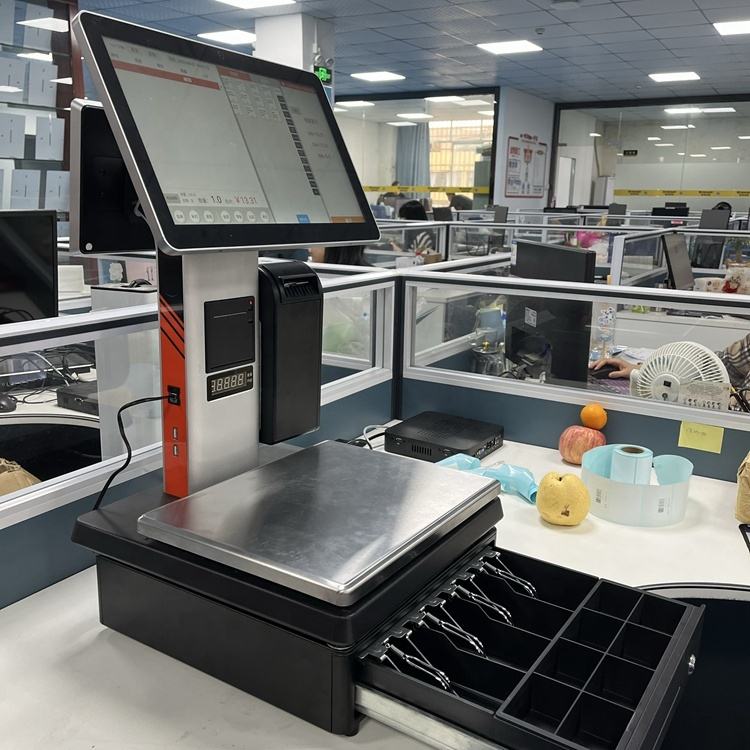 Nombre del producto:Balanza digital con pantalla táctil para cálculo de precios, balanza POS con impresora