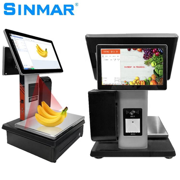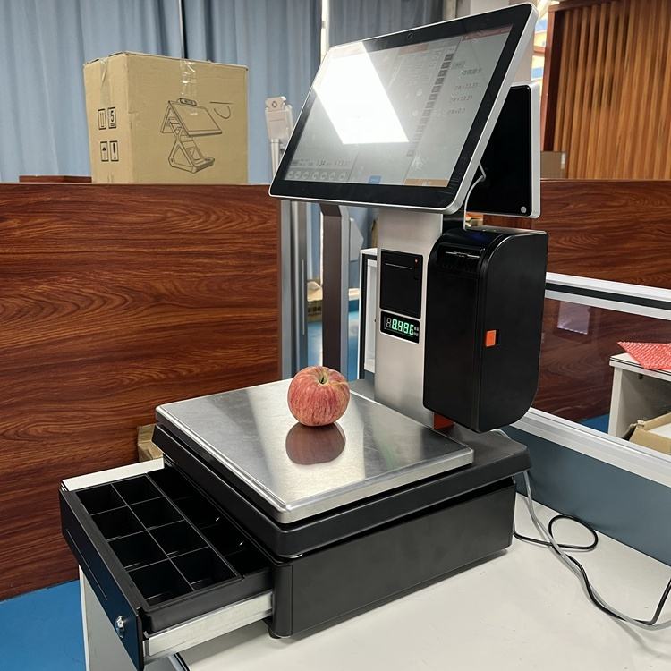 Balanza digital con pantalla táctil para cálculo de precios, balanza POS con impresora