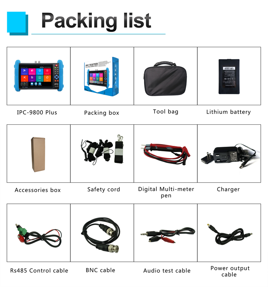 Probador de Cables de CCTV con Cámara IP Full HD Todo en Uno con Monitor Táctil IPS de 7 Pulgadas IPC-9800 Plus