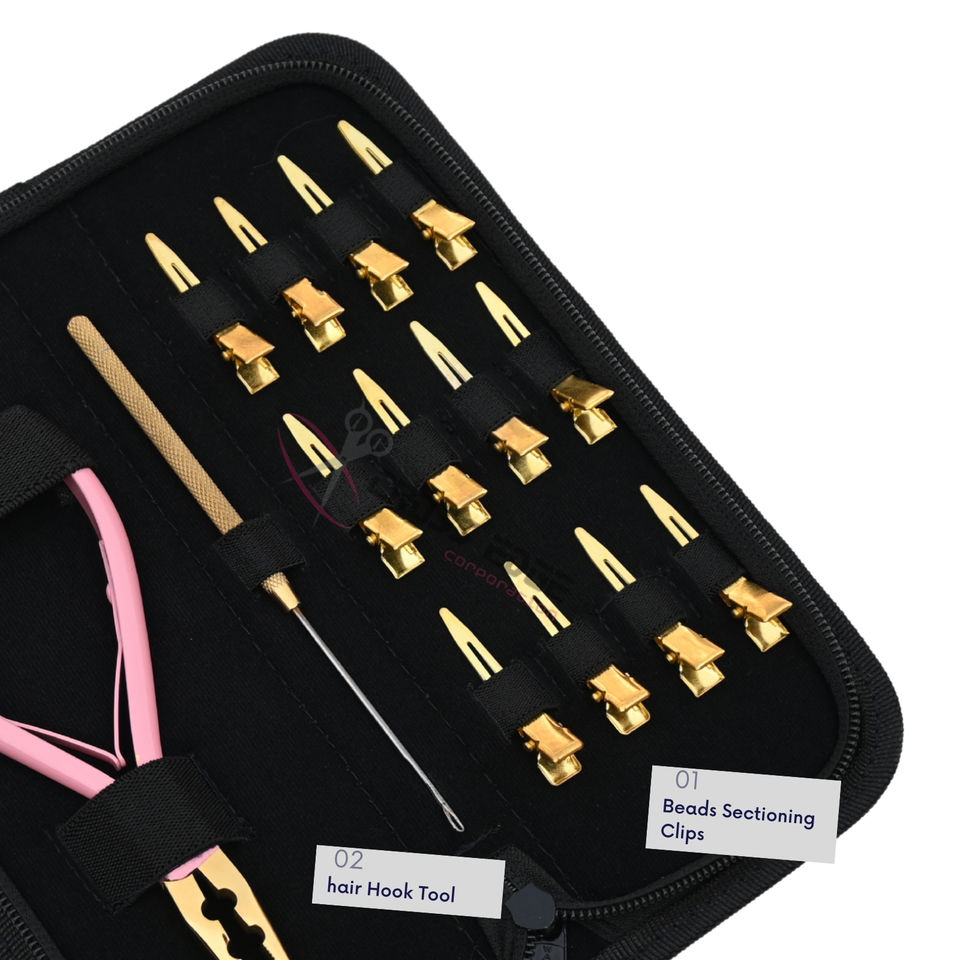 Nombre del Producto:Juego de herramientas todo en uno para extensiones de cabello con alicates de microperlas de 2 orificios
