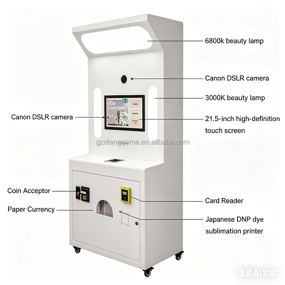 Cabina de Fotos DSLR de Alta Resolución Todo en Uno, Máquina Expendedora de Pie para Área de Autoservicio de Supermercado
