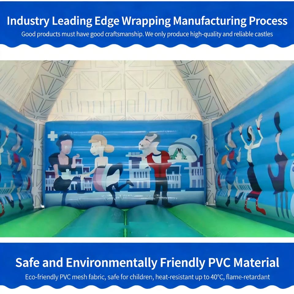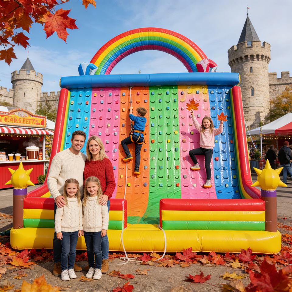Castillo Inflable Todo en Uno con Pared de Escalada, Tobogán y Circuito de Obstáculos para Diversión al Aire Libre
