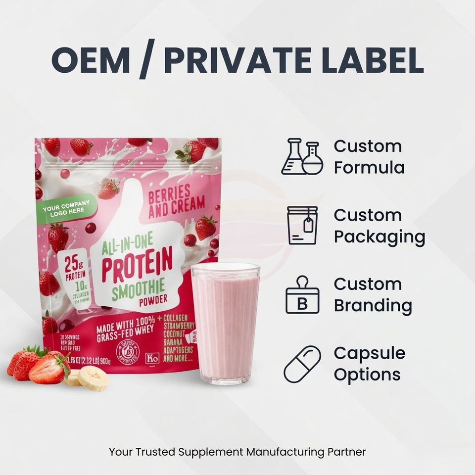 Batido de Proteínas Todo en Uno en Polvo, Sabor Bayas y Crema, Suplemento de Reemplazo de Comida Alto en Proteínas, Marca Privada OEM