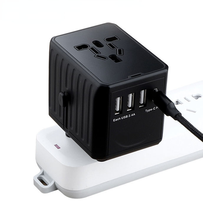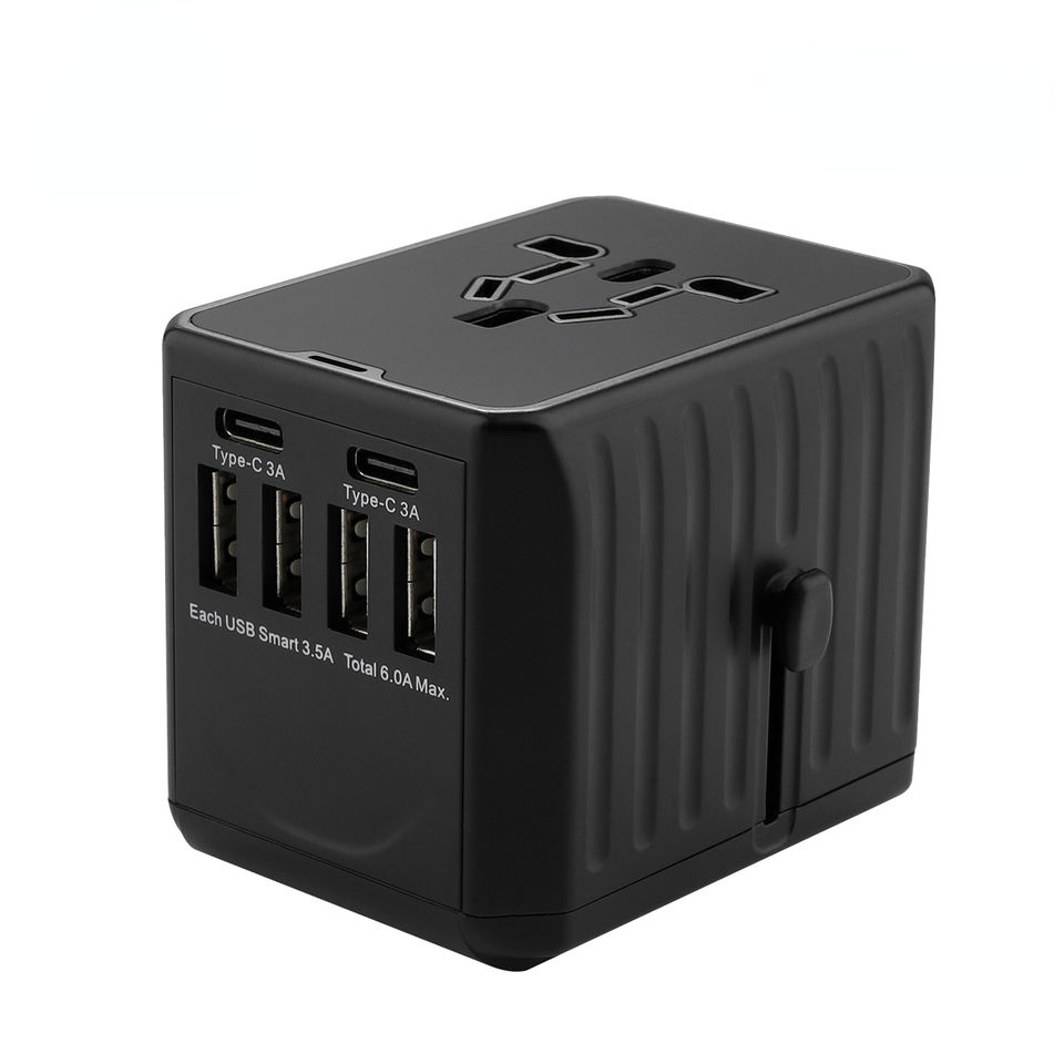 Todo en uno Carga rápida 4 USB 2 Tipo-C Cubo portátil EE. UU. UE AUS Reino Unido Convertidores internacionales universales en todo el mundo Adaptador de viaje
