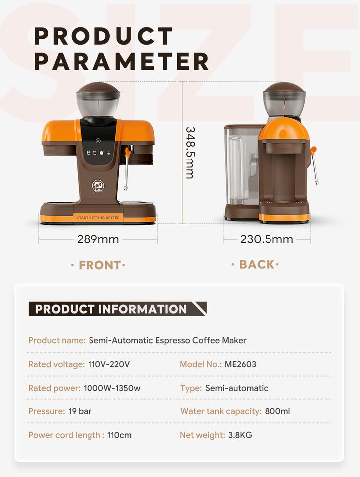Cafetera Inteligente Todo en Uno con Portafiltro de 58 mm, Máquina de Espresso Semiautomática de 19 Bares de Alta Presión para el Hogar y Hoteles