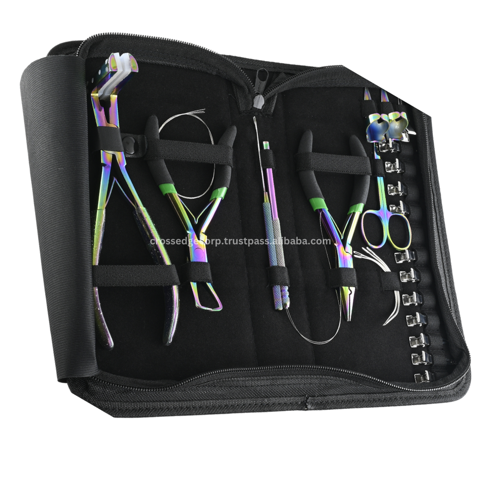 El kit de herramientas de extensión de cabello múltiple todo en uno incluye cinta de tijera de corte de hilo en alicates también alicates de engaste y removedor de microperlas