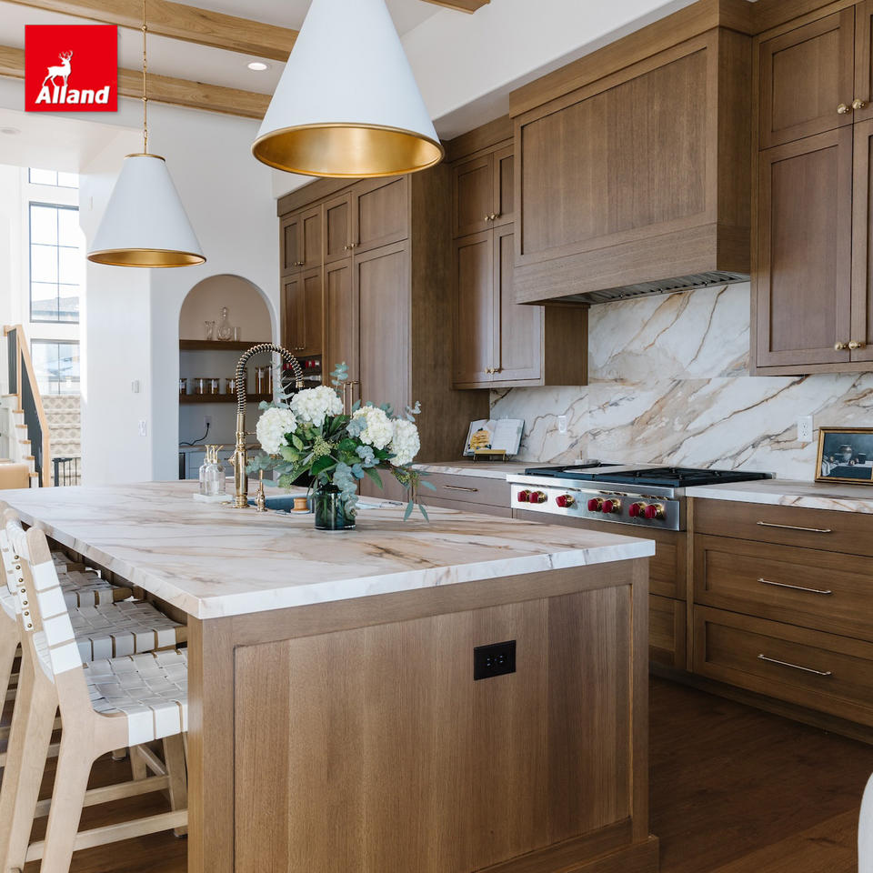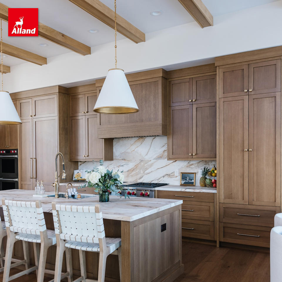 Muebles de Cocina Modernos de Estilo Americano, Color Madera de Nogal, Unidades de Almacenamiento, Modelo Nuevo a Bajo Precio de Allandgroup