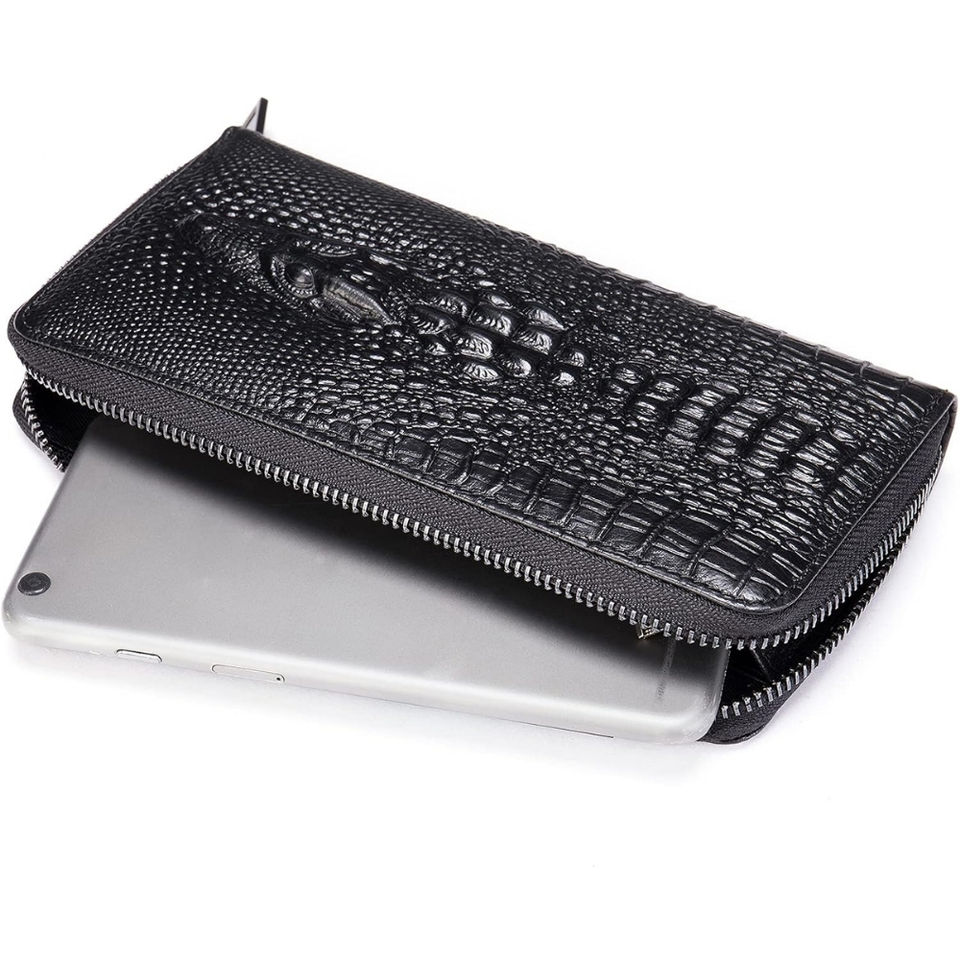 Carteras largas de cuero genuino con patrón de cocodrilo para hombres, billetera personalizada con cremallera, billetera con tarjeta de crédito en efectivo