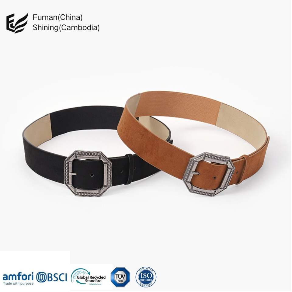 Hebilla de aleación decorativa abrigo femenino vestido Sub-cinturón elástico ancho Material de cuero Sudeste asiático planta cintura traje Wquare hebilla