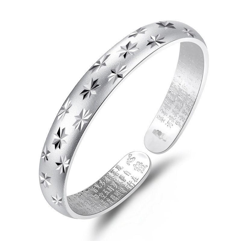 Brazalete de Aleación con Patrón Estrellado, Estilo Antiguo, Sutra del Corazón, Dama Noble, Vintage, Electrochapado, Abierto, Regalo para Mamá, Estilo Chino
