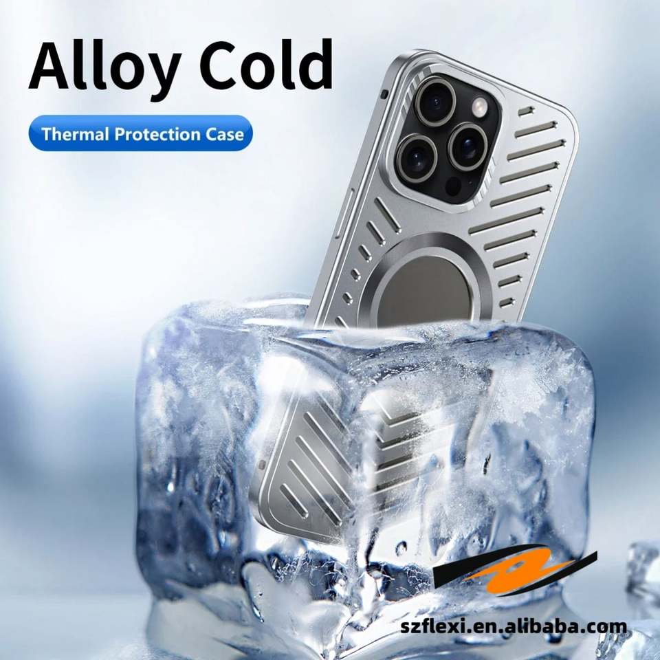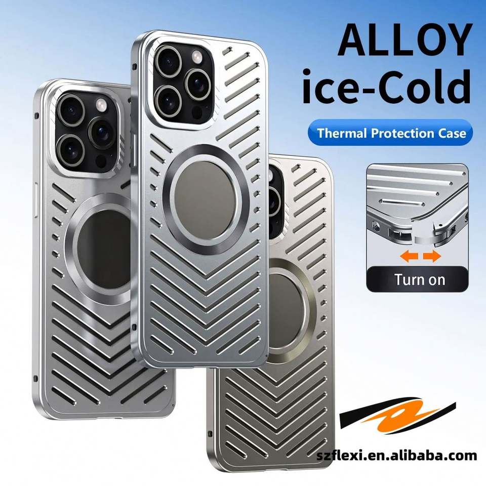 Funda de Aleación para Disipación de Calor para iPhone 16 12 13 14 15 ProMax, Carga Inalámbrica Magnética, Cubierta de Protección de Metal