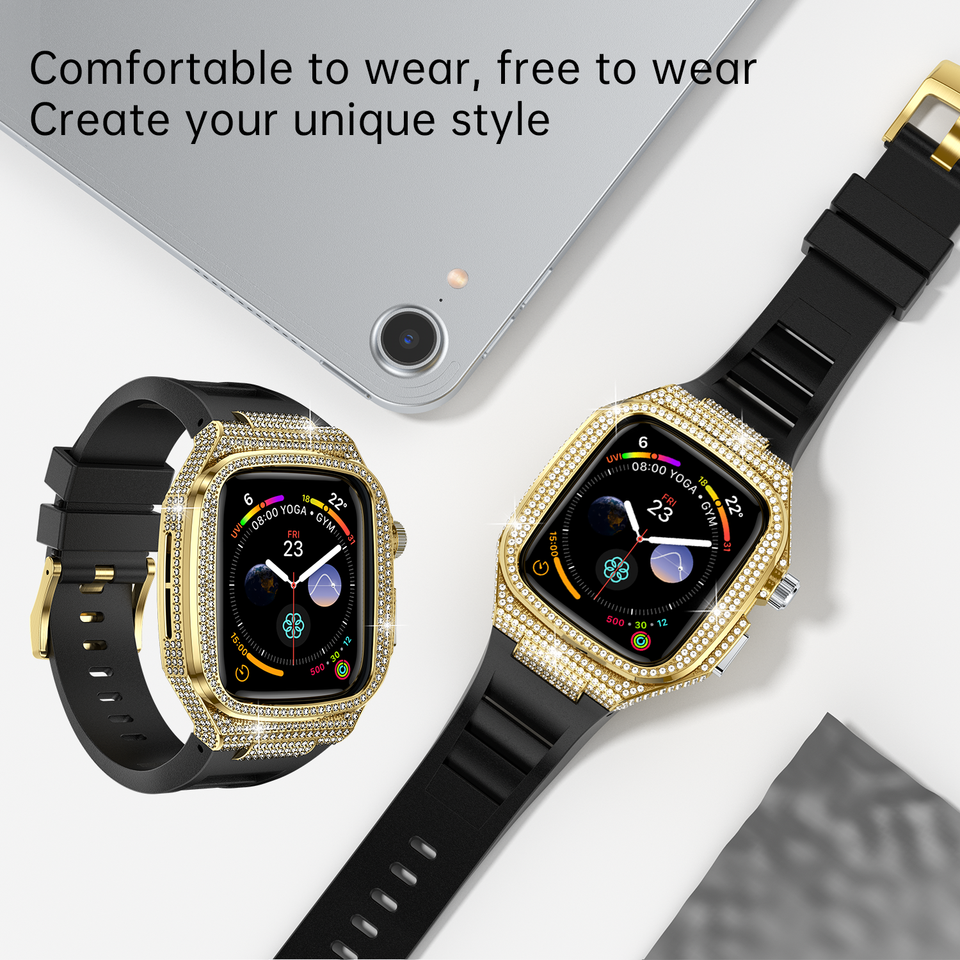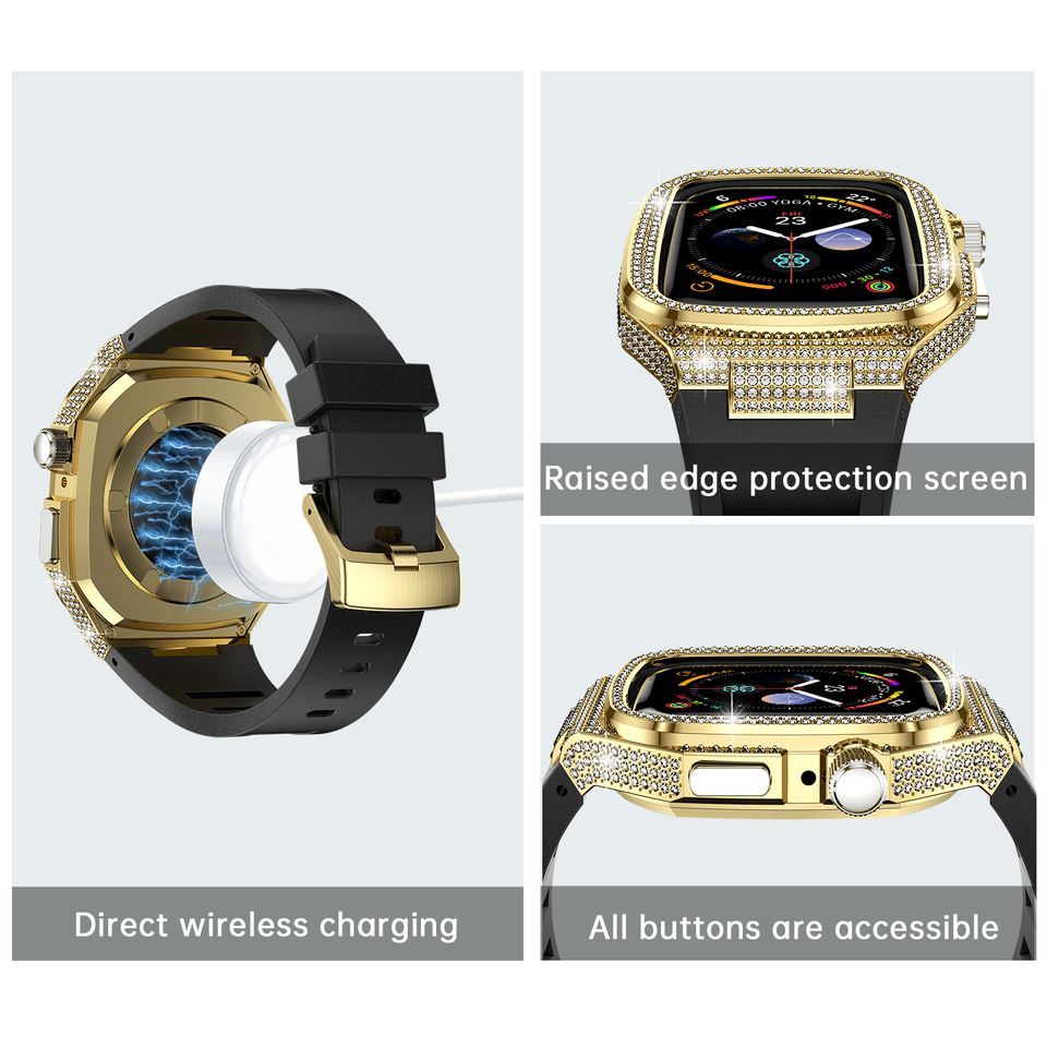 Funda protectora sólida de aleación con correa de silicona suave para Apple Watch Series 4/5/6/se 44mm 7/8/9 45mm S10 42mm 46mm