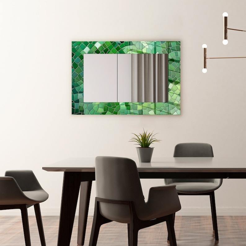 Espejo de Pared Redondo con Diseño de Hojas en Acero Aleado, 29x29 Pulgadas, Color Dorado, Decoración para el Hogar, Mosaico de Vidrio Hecho a Mano, Precio Económico en India