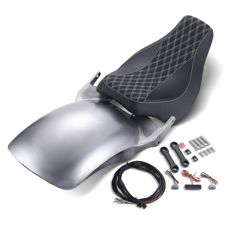 Guardabarros trasero corto de acero de aleación con luces Led, cojín de asiento individual para Harley Softail 2018-2024 Low Rider Fatbob Heritage