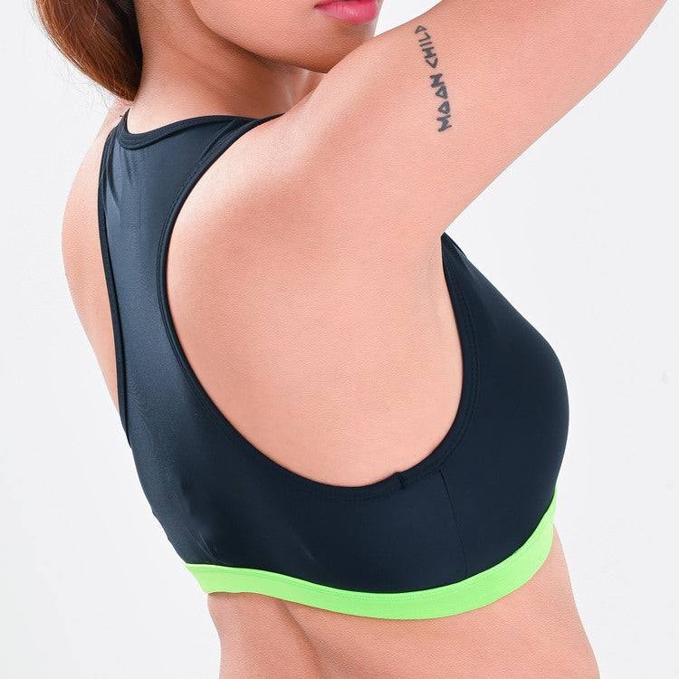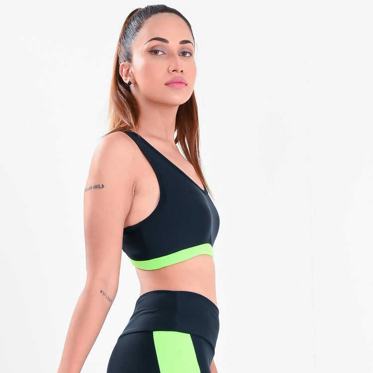 Sujetador deportivo de yoga Allure reversible de malla con cuentas y soporte alto - Negro Neón con tirantes cruzados y escote en V profundo