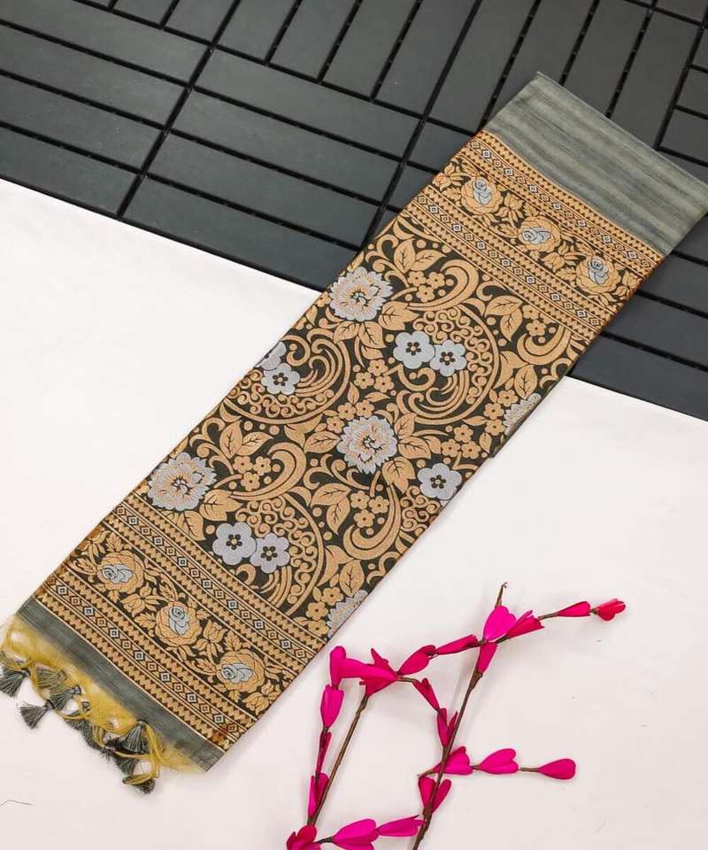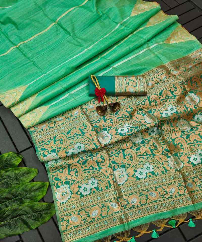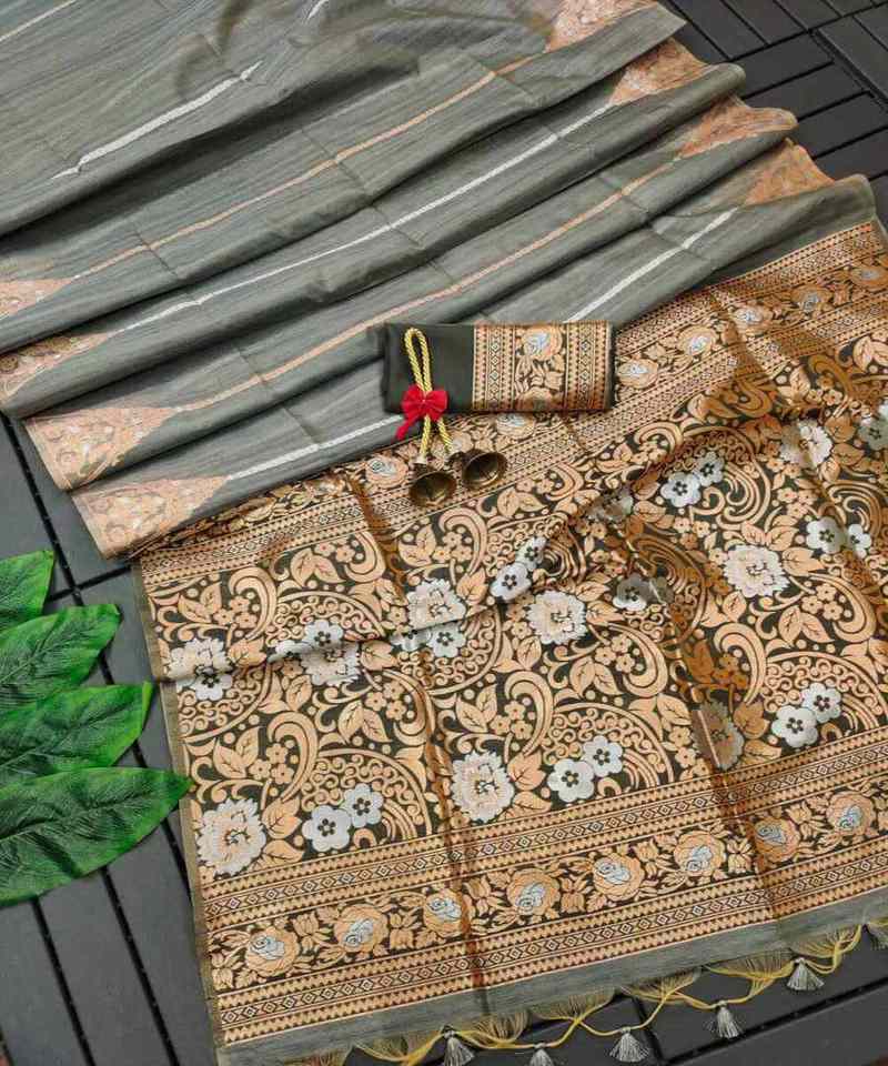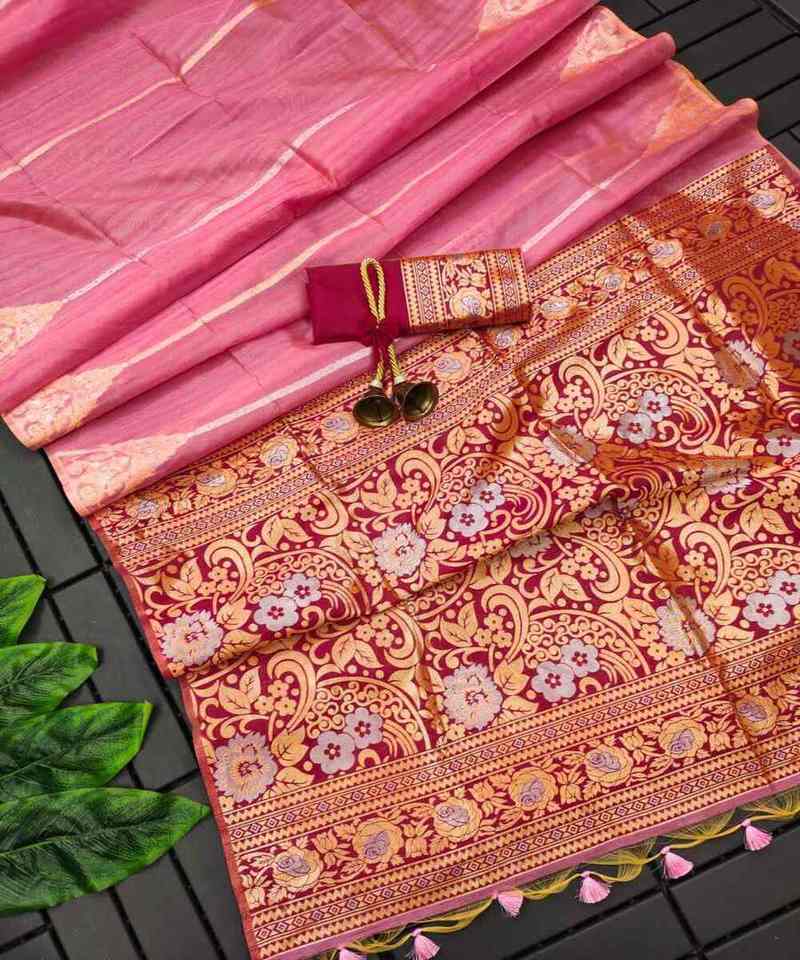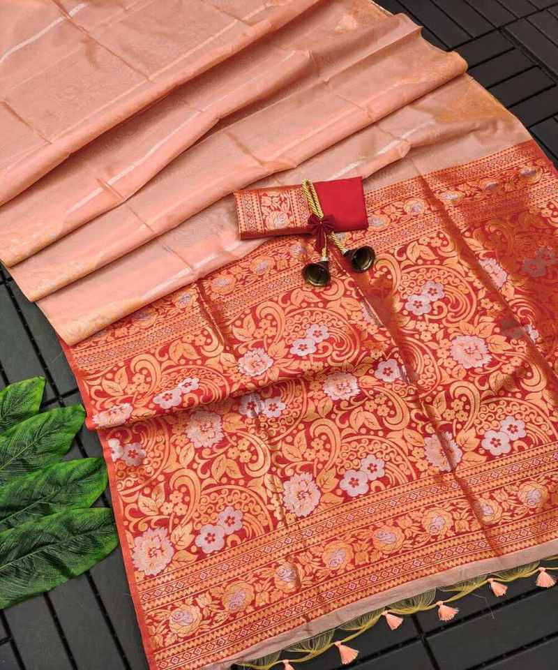Seductor Sari de Chinon con bordado manual y detalles de peleas para uso festivo y tradicional