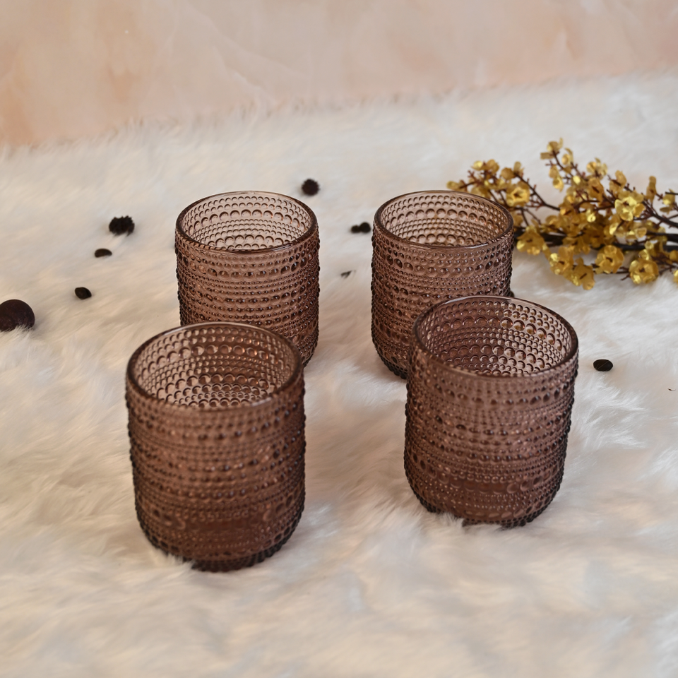 Juego de 4 Vasos de Vidrio Vintage con Diseño de Puntos en Relieve, Patrón de Gota de Lluvia, Color Sólido, para Jugo o Vino