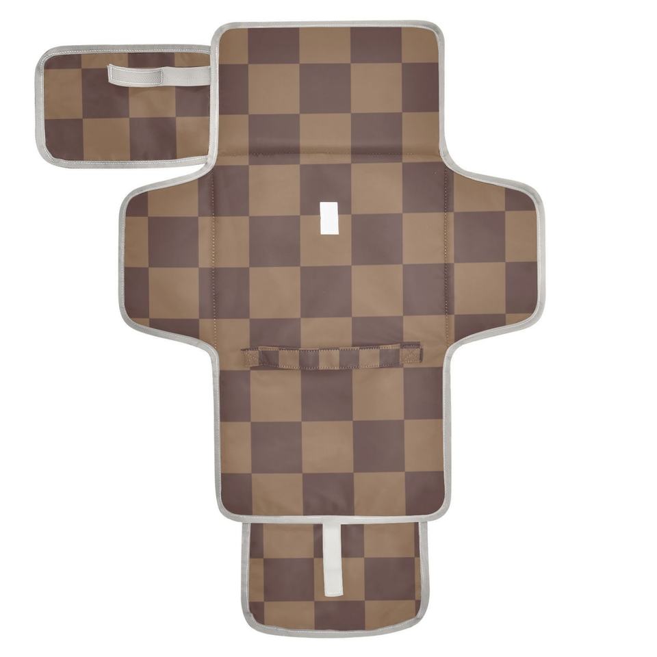 Colchoneta Impermeable para Cambiar Pañales, Colección Aloha, Diseño a Cuadros Marrón, Portátil, Plegable, para Viajes