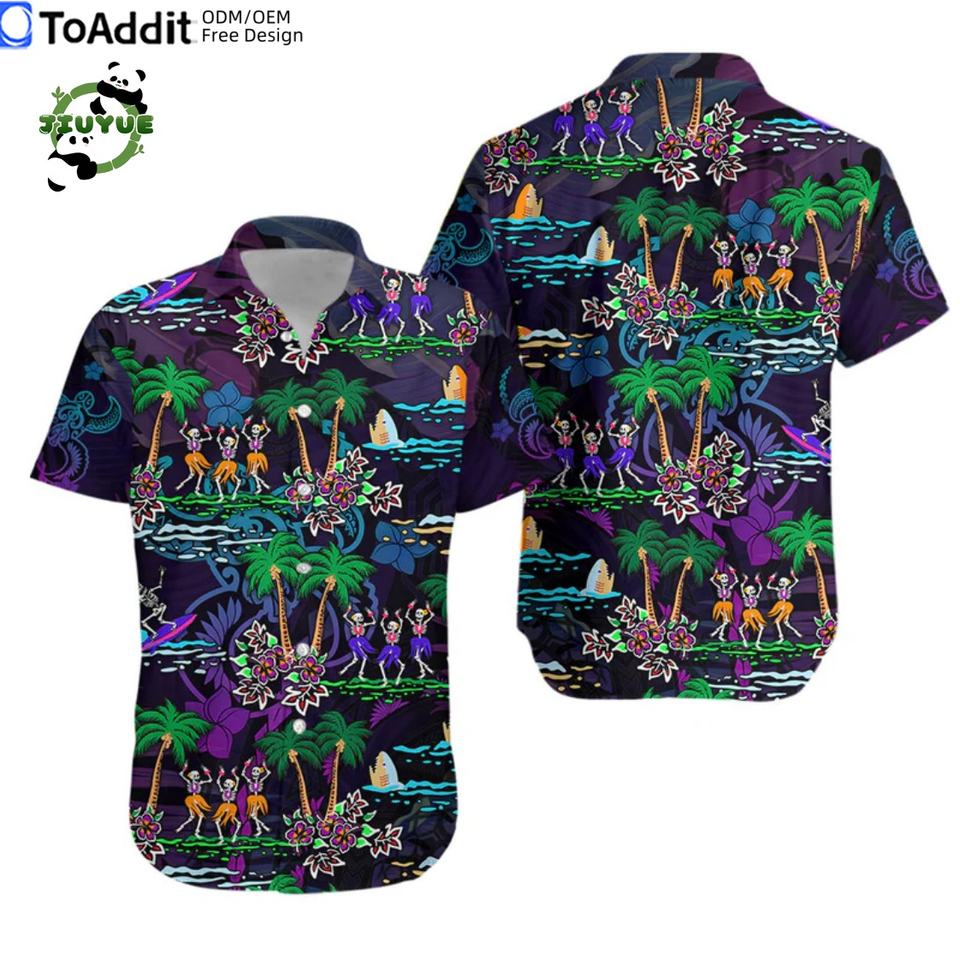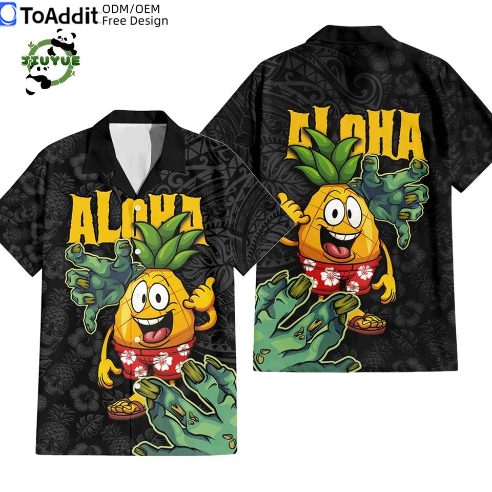 Aloha Custom Hawaii Style Poliéster Hombres Blusa Tropical Floral Impreso Hombres Casual Halloween Hawaiian Turtle Vacation Shirt
