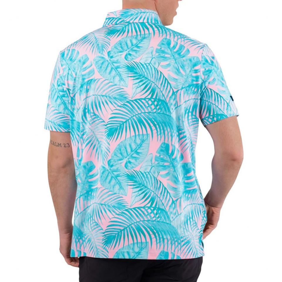 Polo de Golf Aloha Print Personalizado de Alto Rendimiento, Color Amarillo Verano, Cuello Verde Premium de Alta Calidad