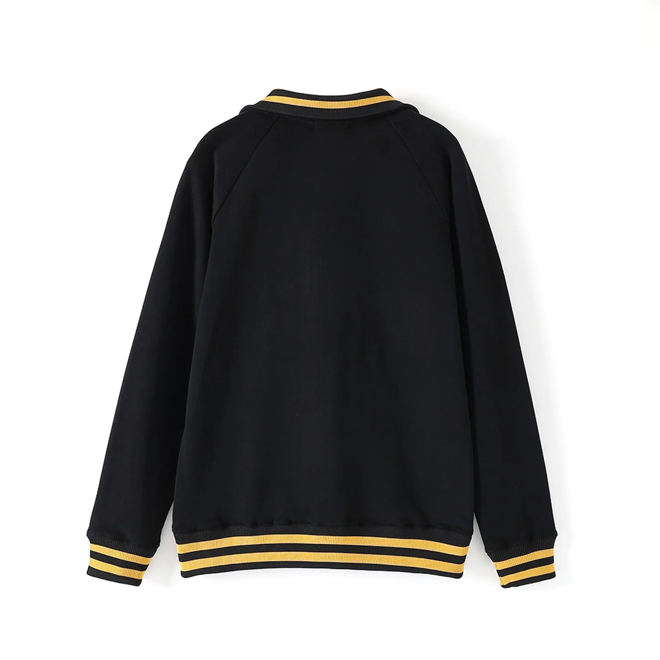 Sudadera Alpha Golden Strip con Cierre de Cremallera, Lavado Ácido, Dobladillo y Puños Acanalados, Letra Griega Bordada, Estilo Deportivo de Invierno