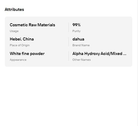 Ácido Alfa Hidroxi (AHA) en Polvo 99% de Alta Pureza, Ácido de Frutas Mixto para Nutrir y Blanquear la Piel