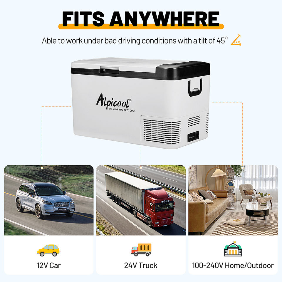 Alpicool 25L Caja de refrigeración portátil Capacidad de refrigeración Mini nevera ABS PP Material 12V Congelador de coche basado en compresor