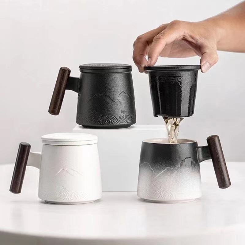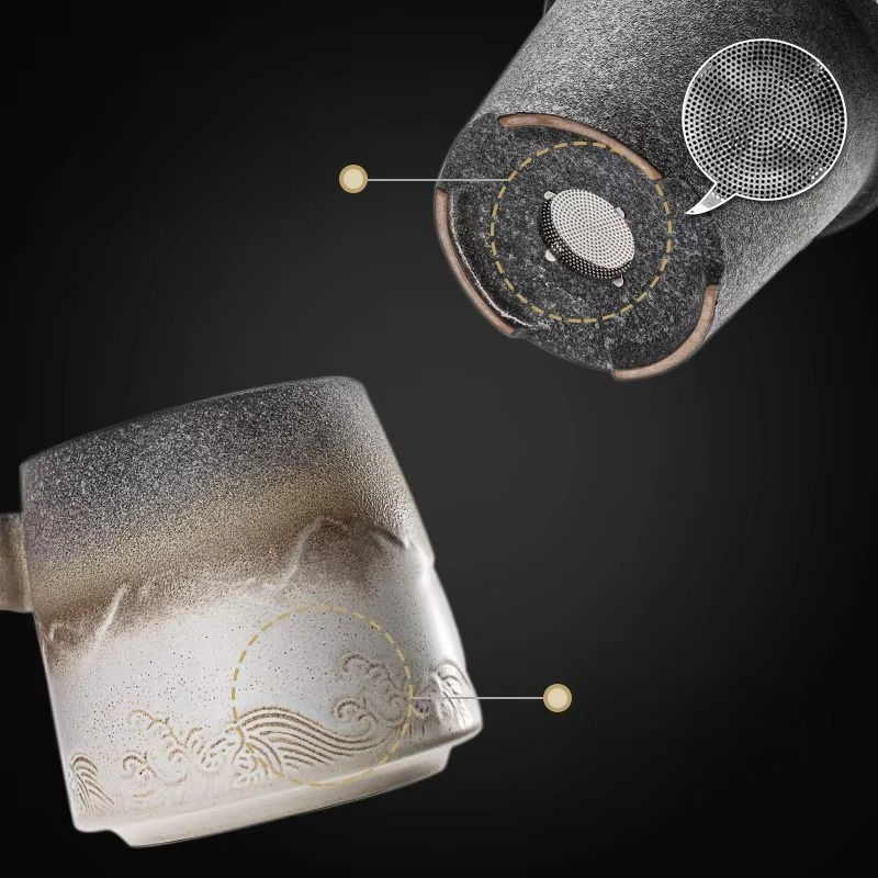 Taza de Cerámica Shanhai de Gran Capacidad Alpine con Filtro y Tapa, Taza de Té, Tazas y Platillos para el Hogar