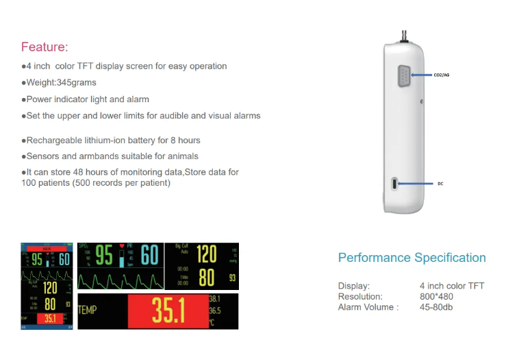 Monitor de Alta Precisión Veterinario IM5 Con Alarma Visual/Auditiva Para UCI Animal