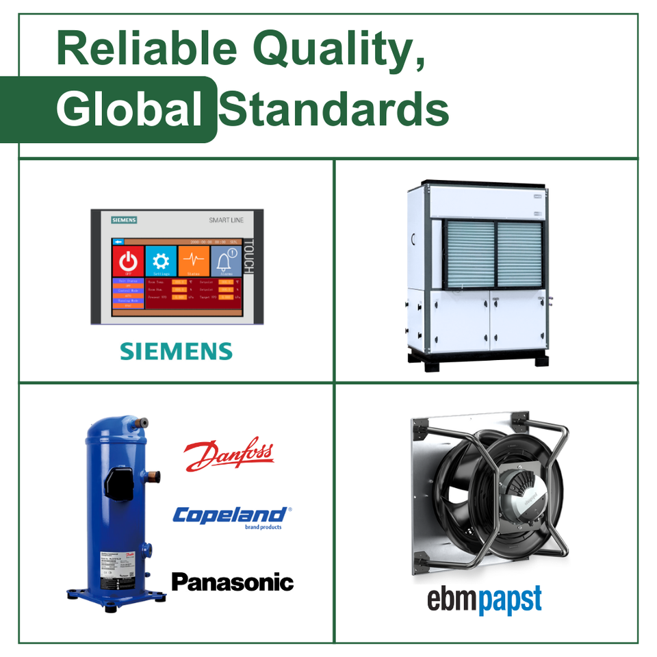 Best compressor, Siemens PLC, EC Fan MotorLos componentes principales.