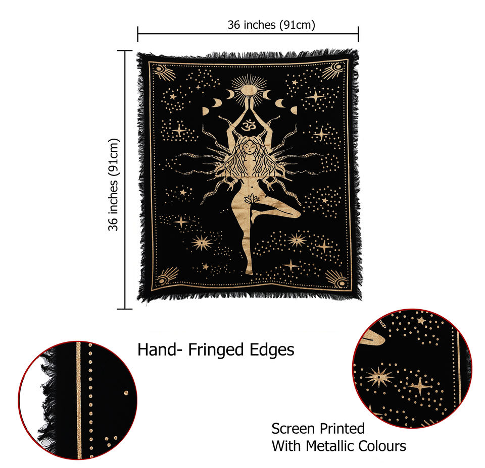 Mantel de Altar para Yoga, Meditación, Algodón, Wicca, Cuadrado, Negro y Dorado, para Tarot, Brujería, por Indian Consigners