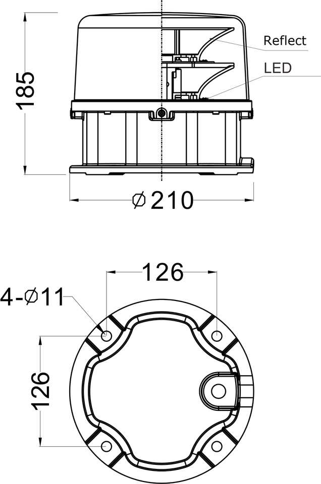 Tamaño total:166*166mm-4 * M10