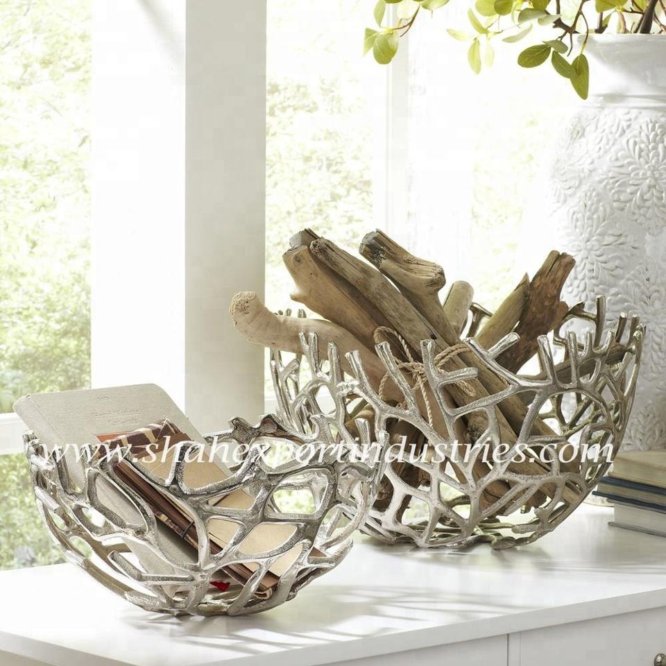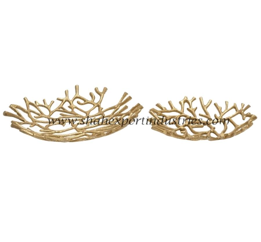 Plato para Servir Frutas de Aluminio Dorado con Diseño Innovador de Raíces de Árbol, Perforado y Personalizable para Mesa de Comedor, Decorativo