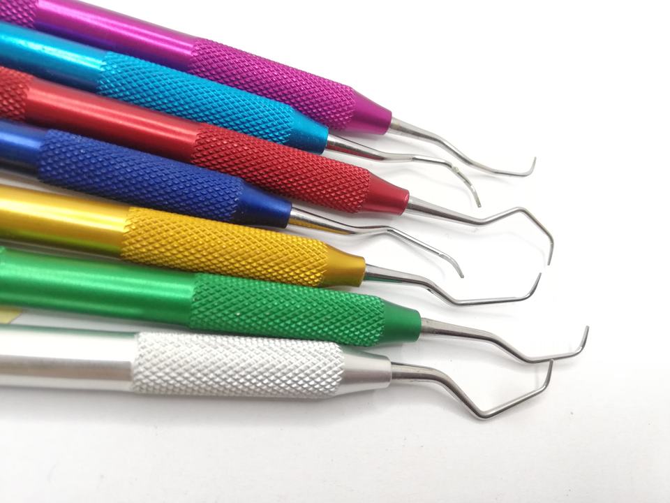 Mango de aluminio, Últimos colores diferentes, logotipo personalizado, instrumento de llenado de resina compuesta Dental, espátulas, restauración estética