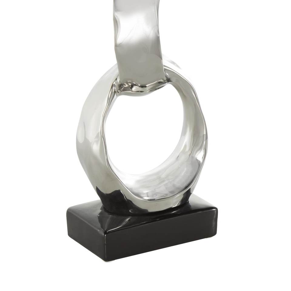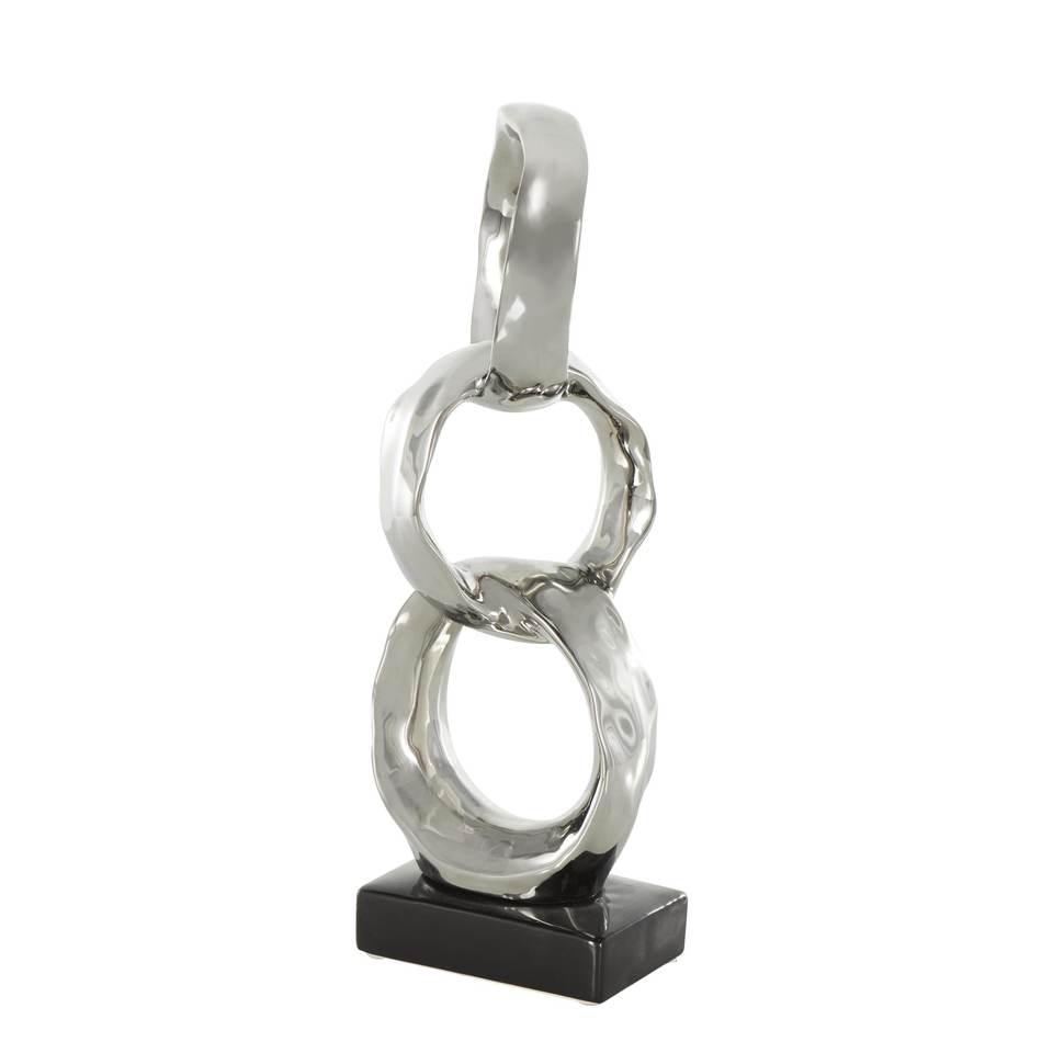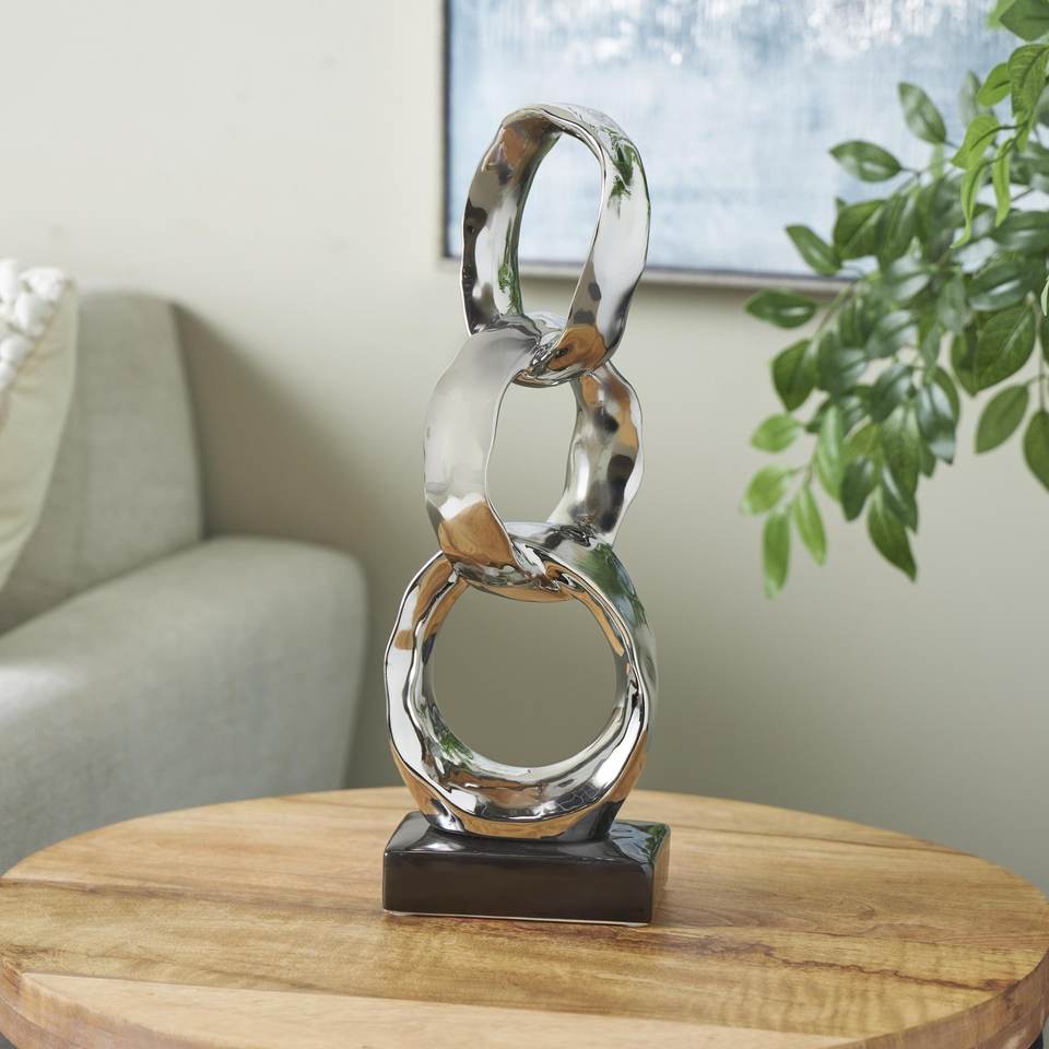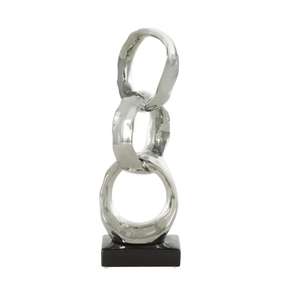 Anillos de Metal Plateados en Aluminio, Escultura Abstracta de Arte Antiguo con Base Negra Pulida, Decoración para el Hogar