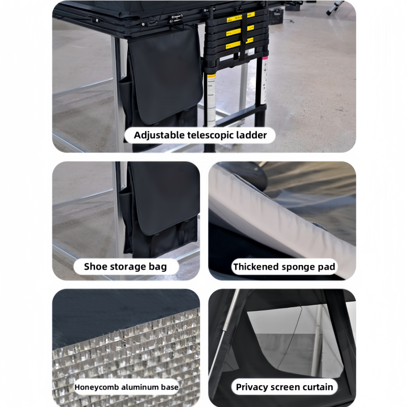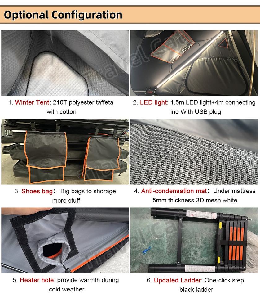 Carpa de Techo Rígida Desplegable de Aluminio, Carpa Triangular para 2-3 Personas, Ideal para SUV, Camioneta, Jeep, Van