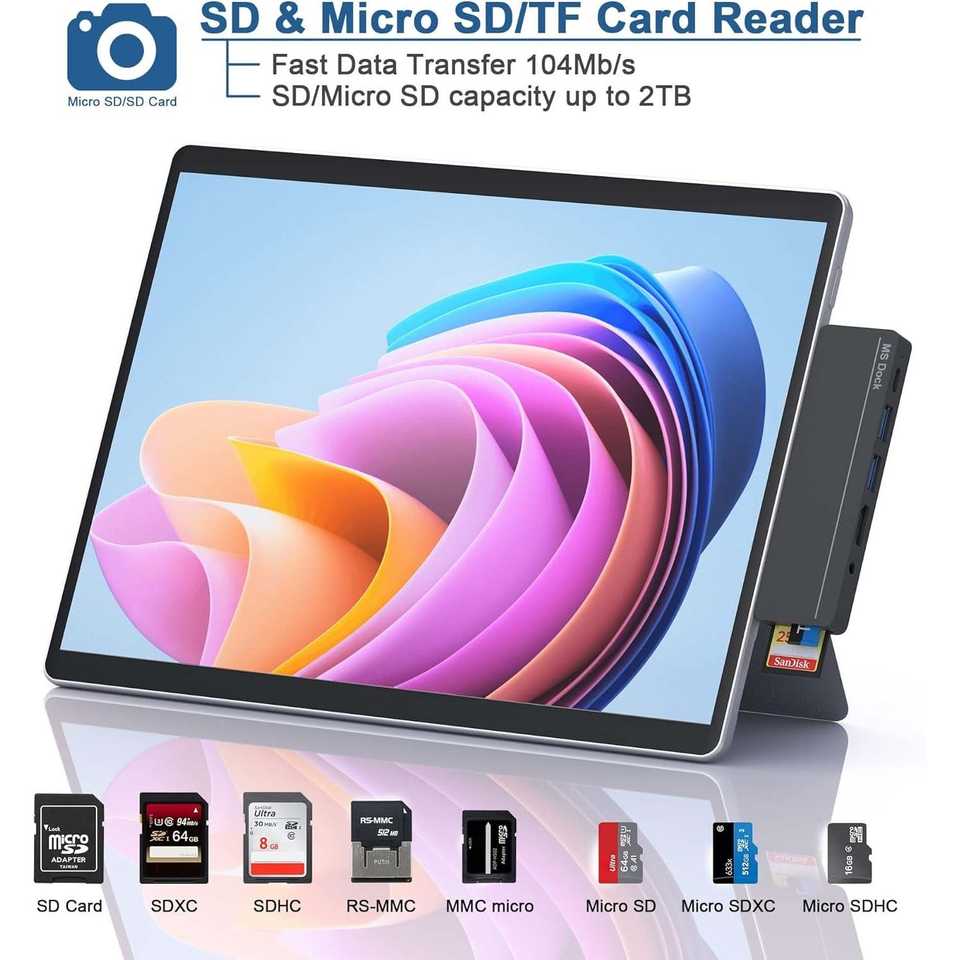 Accesorios para Surface Pro 9 de Aluminio, Hub HDMI 4K, USB C Thunderbolt 4 de 100W (Pantalla + 40Gbps + PD), Audio USB C, 2 Puertos USB Compatibles