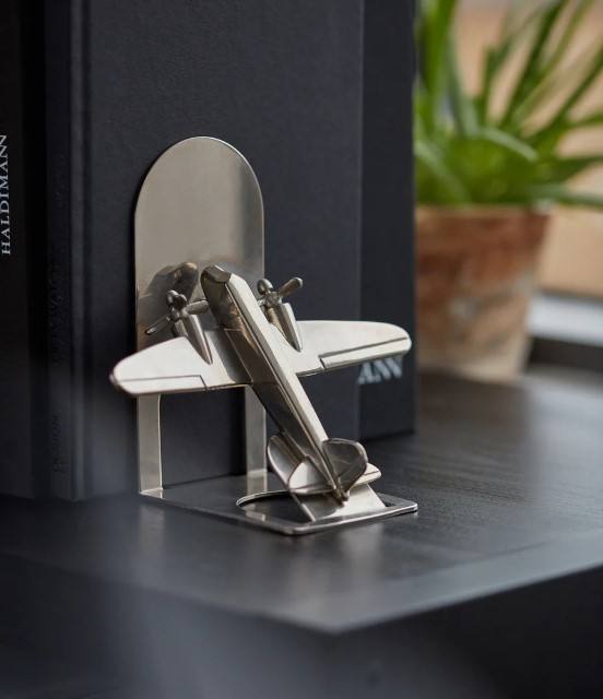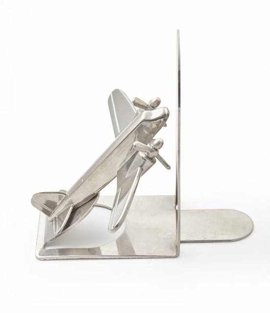 Sujetalibros de Aluminio Estilo Art Deco Vintage con Forma de Avión, Níquel Plateado, Latón, Forma Personalizada, Decoración Vertical para Escritorio de Oficina, N Sons Innovation