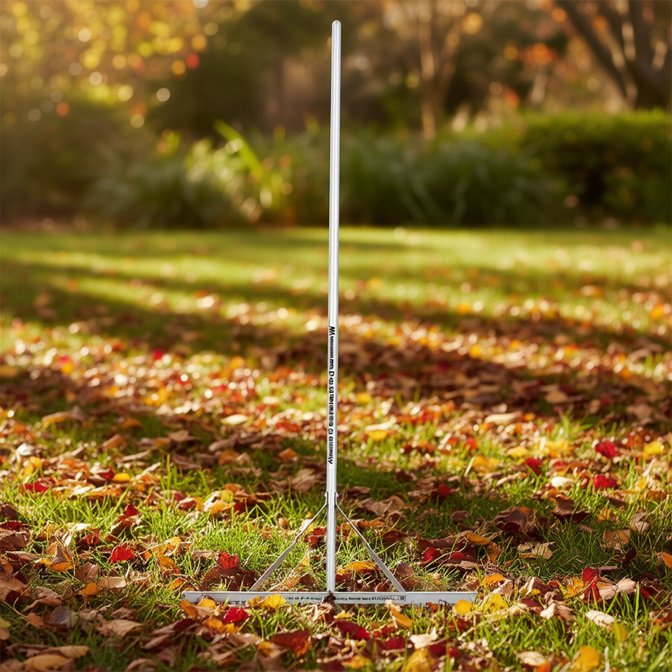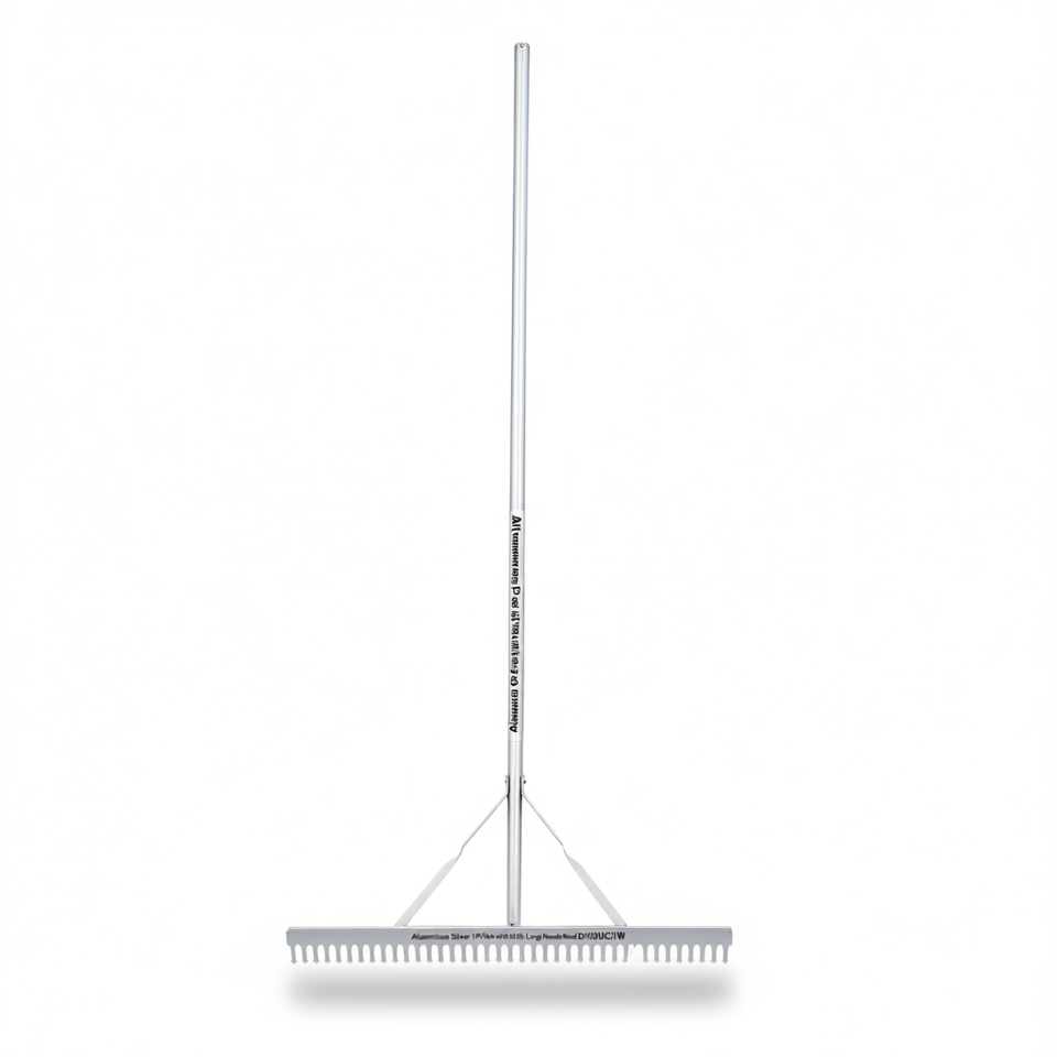 Rastrillo de Jardín de Aluminio Plateado, 1 Pieza, Cabezal de 36 Pulgadas de Ancho, Mango de 68 Pulgadas de Largo, Modelo D0100XUCI1W