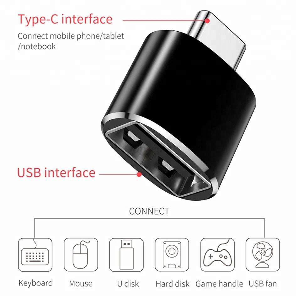 Adaptador de Aluminio Tipo C, USB-C 3.1 Macho a USB 3.0 Tipo A Hembra, Adaptador OTG para Teléfono Móvil