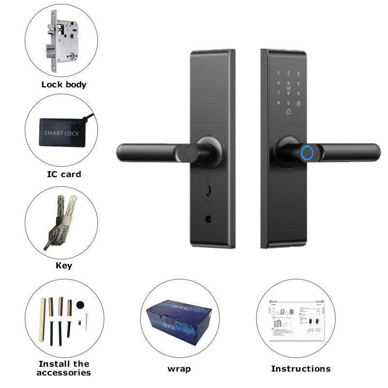 Cerradura Inteligente de Aluminio con Huella Dactilar, Contraseña y Tarjeta para Puerta de Madera, para Uso en Hoteles y Hogares, con Cuerpo de Cerradura Tuya wifi 5050